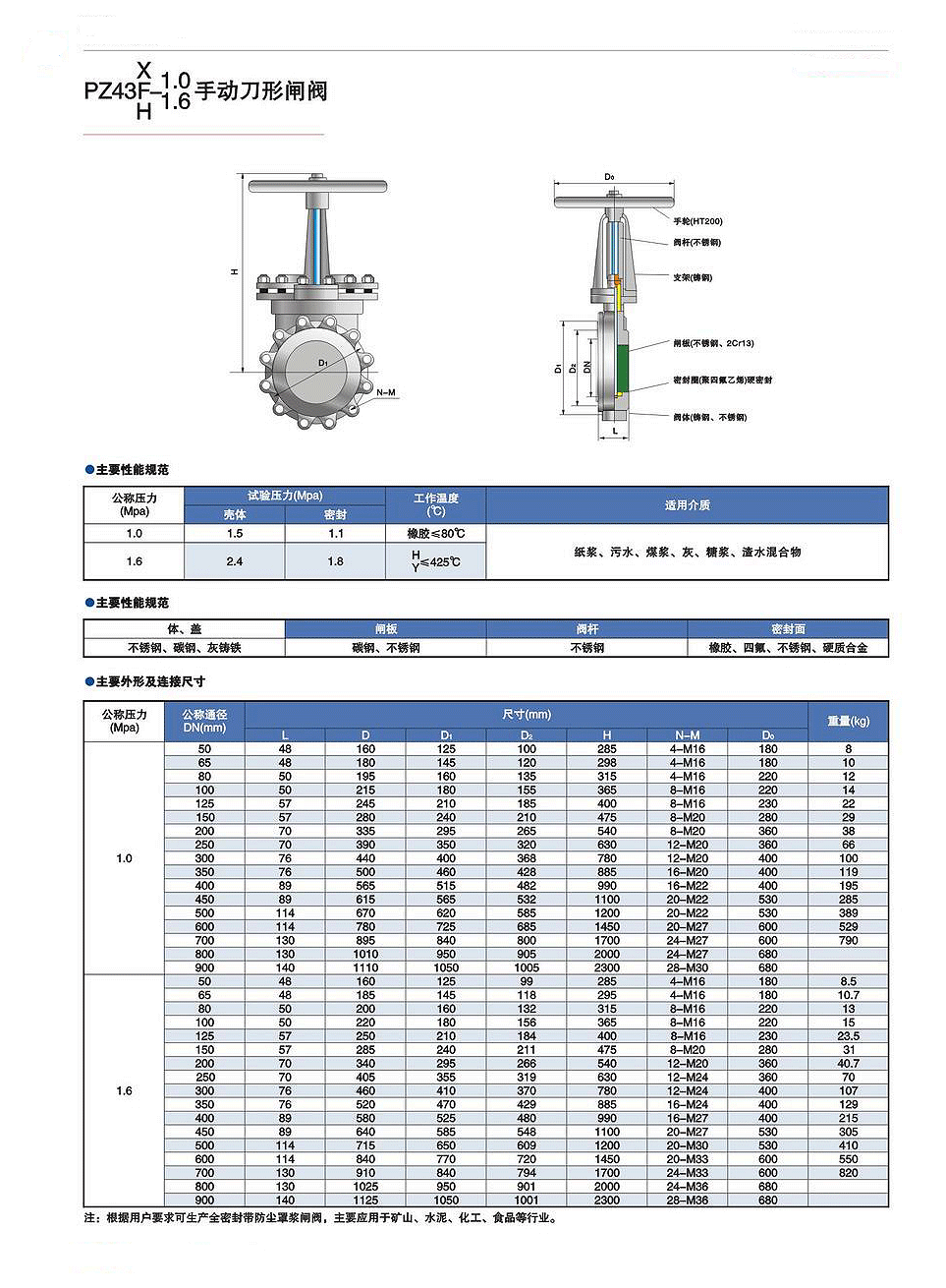 結(jié)構(gòu)特點(diǎn):手動刀型閘閥具有結(jié)構(gòu)簡單緊湊、設(shè)計合理、輕型節(jié)材,密封可靠、操作輕便靈活、體積小、通道流暢、流阻小、重量輕、易安裝、易拆卸等優(yōu)點(diǎn),可在工作壓力1.0MPa-1.6MPa,使用溫度-29-650℃情況下正常工作。刀型閘閥其閘板具有剪切功能,可刮除密封面上的粘著物,自動清除雜物,不銹鋼閘板可防止腐蝕引起的密封泄漏。本類閥門在管道中一般應(yīng)當(dāng)水平安裝。