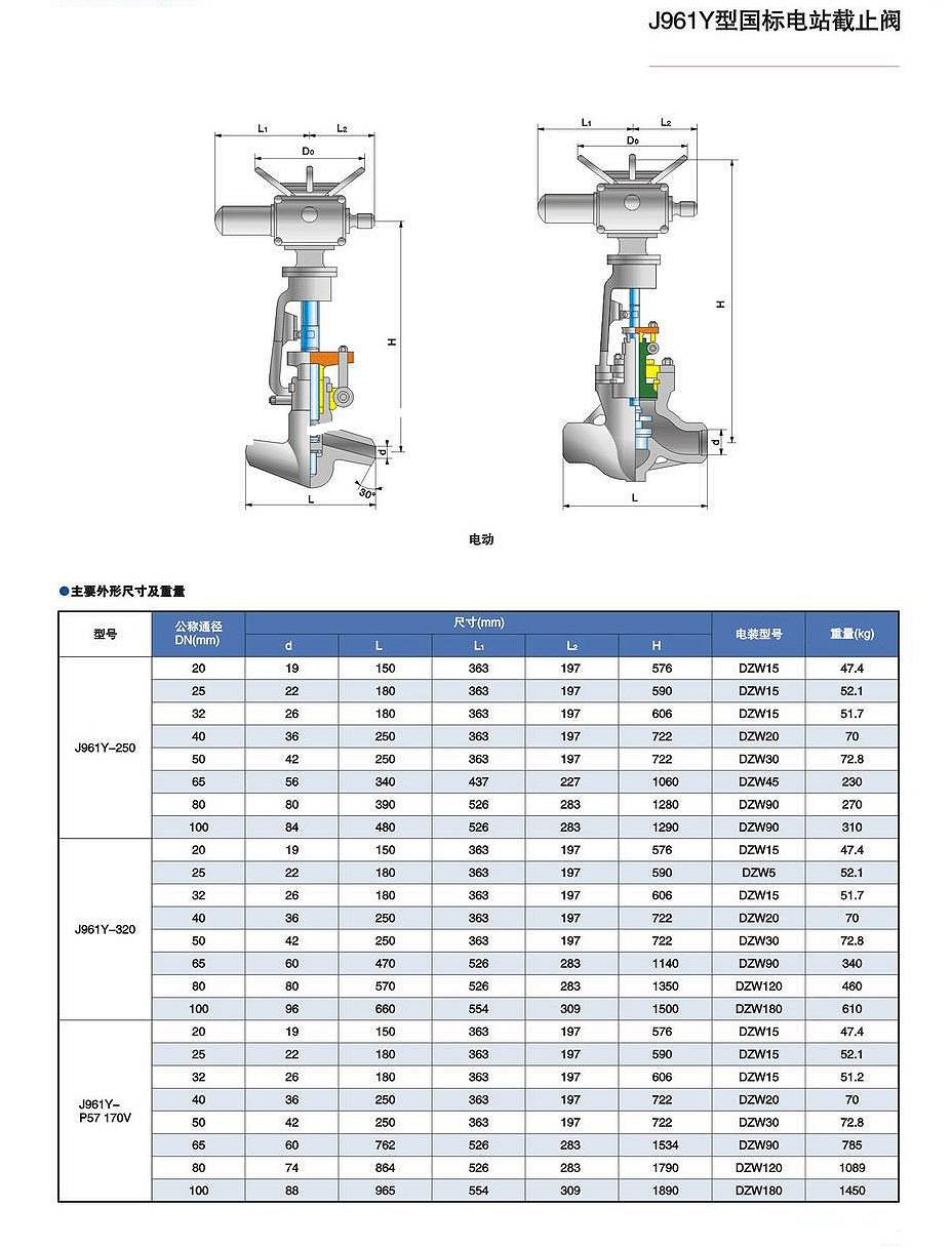 J961Y國標(biāo)電動電站截止閥