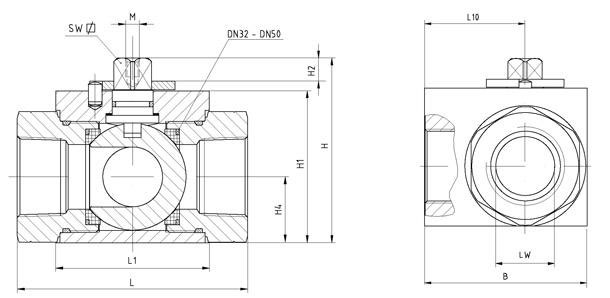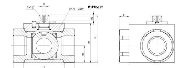 DN4-25 碳鋼方閥體三通球閥 BK3