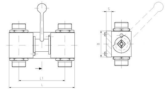 帶連動(dòng)手柄BKH直通高壓球閥,訂貨時(shí)型號(hào)前加"2×",如2×BKH G3/8 08 1125。