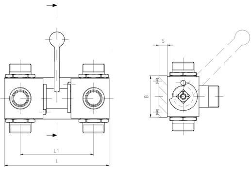 帶連動(dòng)手柄BK3三通高壓球閥,訂貨時(shí)型號(hào)前加"2×",如2×BK3 G3/8 08 1125。